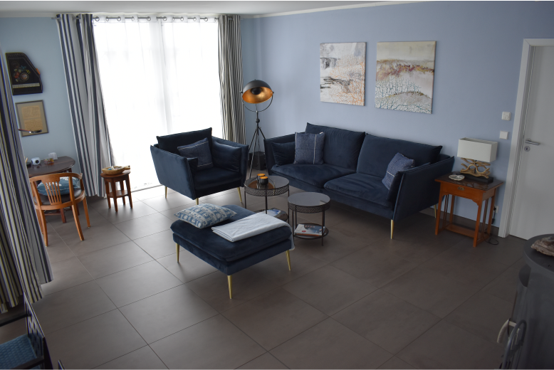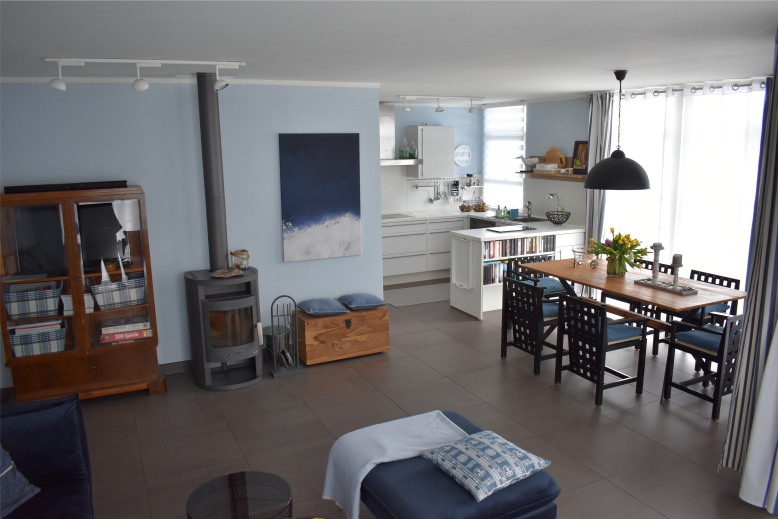 Entspannen Sie nach Ihrer Erkundungstour auf der Insel Rügen oder dem Bad im Bodden bei einem guten Buch oder einem spannenden Fernsehkrimi im einladenden Wohnbereich – im Winter bei flackerndem Kaminfeuer.